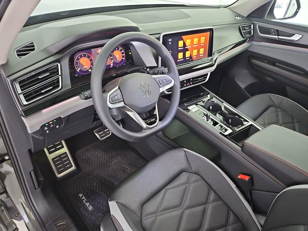 Third Row Seat, Sunroof, Panoramic Roof, All Wheel Drive, Power Liftgate, Rear Air, Heated Driver Seat, Cooled Driver Seat, Back-Up Camera, Turbocharged, Satellite Radio, iPod/MP3 Input, Onboard Communications System, Trailer Hitch, Aluminum Wheels Rear Spoiler, MP3 Player, Remote Trunk Release, Privacy Glass, Keyless Entry. Volkswagen 2.0T Peak Edition with Avocado Green Pearl exterior and Titan Black w/ Orange Stitching interior features a 4 Cylinder Engine with 269 HP at 5500 RPM*.