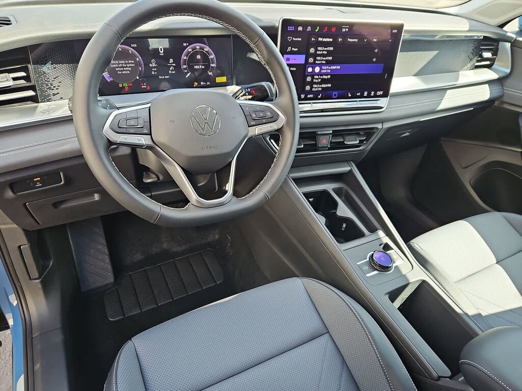All Wheel Drive, Power Liftgate, Heated Driver Seat, Back-Up Camera, Turbocharged, Satellite Radio, iPod/MP3 Input, Onboard Communications System, Aluminum Wheels, Remote Engine Start, Dual Zone a/C, WiFi Hotspot, Lane Keeping Assist, Apple CarPlay®, Cross-Traffic Alert Rear Spoiler, MP3 Player, Keyless Entry, Privacy Glass, Remote Trunk Release. Volkswagen SE with Monterey Blue Pearl exterior and Grigio Gray/Titan Black interior features a 4 Cylinder Engine with 201 HP at 5000 Rpm*.
