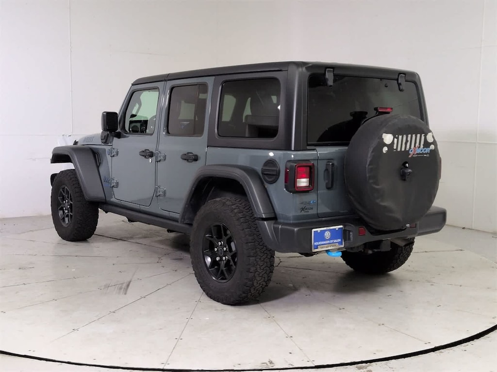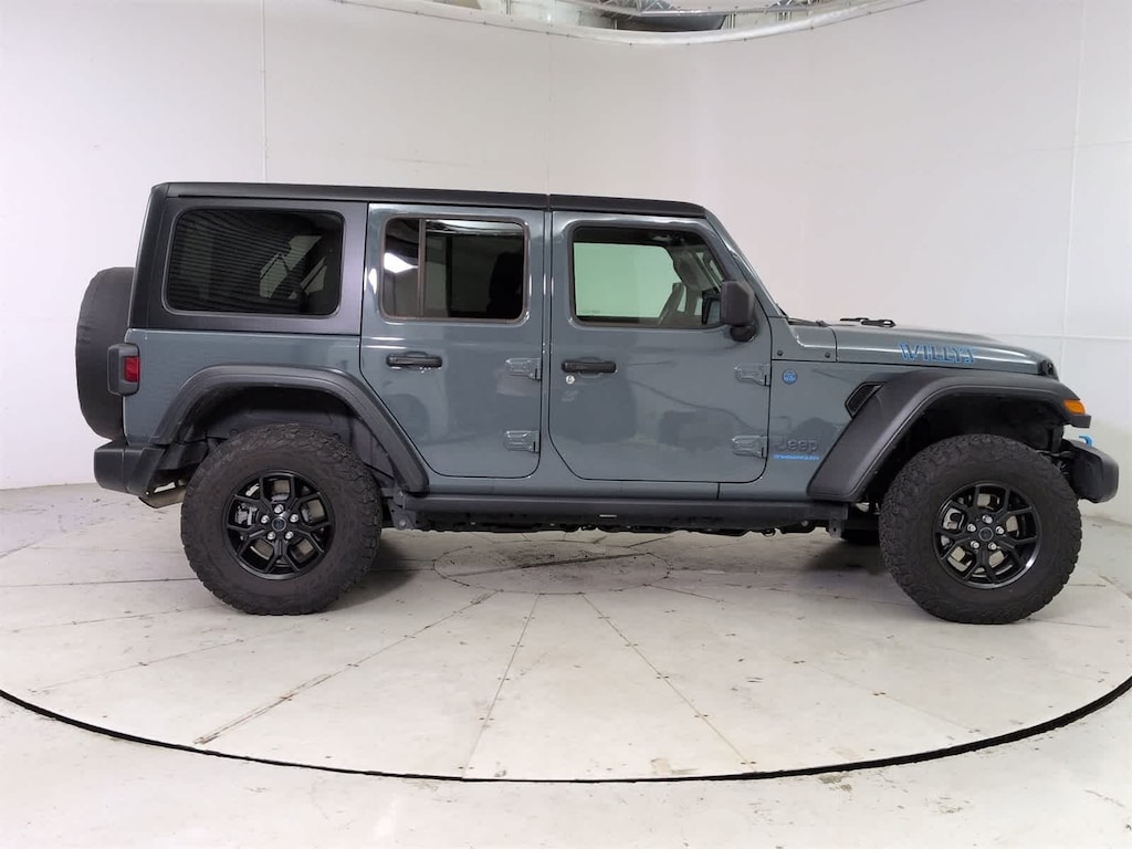 2.0L I4 DOHC, 2-Door Passive Entry, Front Door Locks, 4-Wheel Disc Brakes, 4xe 4-Wheel Drive Swing Gate Decal, 7 & 4 Pin Wiring Harness, 8 Speakers, 97 MPH Vehicle Max Speed Calibration, ABS brakes, Air Conditioning, Alloy wheels, Alpine Premium Audio System, Apple CarPlay/Android Auto, Automatic temperature control, Auxiliary Switches, Black 3-Piece Hard Top, Black Grille, Brake assist, Cloth Low-Back Bucket Seats, Compass, Convenience Group, Conventional Differential Front Axle, Delay-off headlights, Driver door bin, Driver vanity mirror, Dual front impact airbags, Dual front side impact airbags, E-Locker Rear Axle, Electronic Stability Control, Emergency/Assistance Call, EV/PHEV Vehicle To Load, Freedom Panel Storage Bag, Front anti-roll bar, Front Bucket Seats, Front Center Armrest w/Storage, Front dual zone A/C, Front fog lights, Front LED Fog Lamps, Front reading lights, Fully automatic headlights, Heated door mirrors, Heated Front Seats, Heated Steering Wheel, Illuminated entry, Integrated roll-over protection, LED Premium Reflector Headlamps, Low tire pressure warning, Molded in Color Rubicon Highline Flare, MOPAR All-Weather Floor Mats, No Soft Top, Occupant sensing airbag, Off-Road Plus Mode, Outside temperature display, Overhead airbag, Panic alarm, ParkView Rear Back-Up Camera, Passenger door bin, Passenger vanity mirror, Power door mirrors, Power steering, Power windows, Quick Order Package 29W Willys, Radio data system, Radio: Uconnect 5 w/12.3 Display, Rear anti-roll bar, Rear reading lights, Rear Window Defroster, Rear Window Wiper/Washer, Remote keyless entry, Remote Start System, Security system, Speed control, Split folding rear seat, Sport Suspension, Steering wheel mounted audio controls, Tachometer, Technology Group, Telescoping steering wheel, Tilt steering wheel, Traction control, Trip computer, Universal Garage Door Opener, Variably intermittent wipers, Voltmeter, Wheels: 17 x 7.5 Painted Black, Wheels: 20 x 8 Machined/Painted Gray, Willys Suspension, Willys, Willys 4xe Hood Decal, 2.0L I4 DOHC. Some of our Pre-Owned vehicles may be subject to unrepaired safety recalls. Check for a vehicle??s unrepaired recalls by VIN at http://vinrcl.safercar.gov/vin/