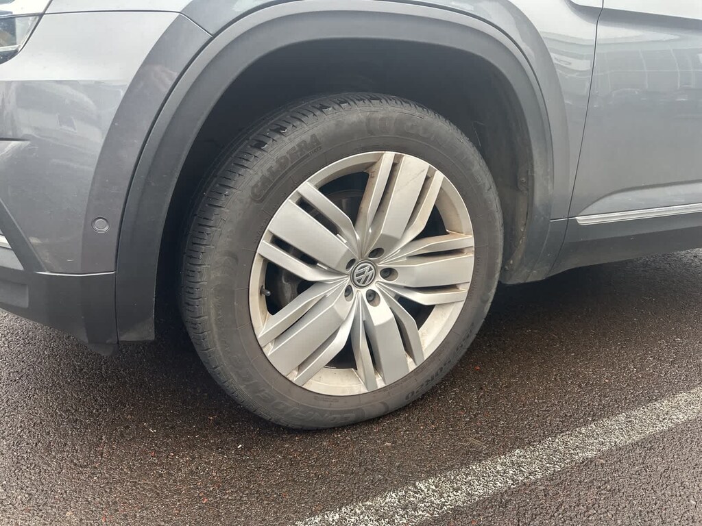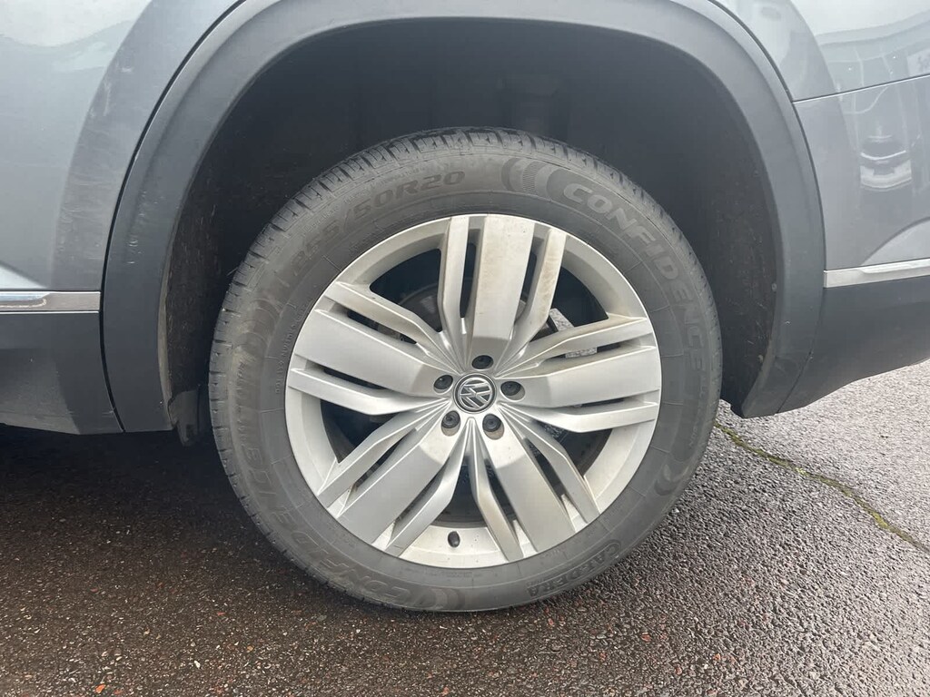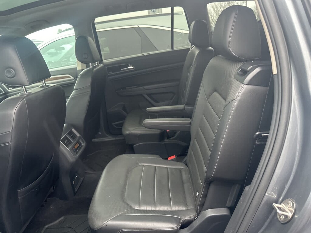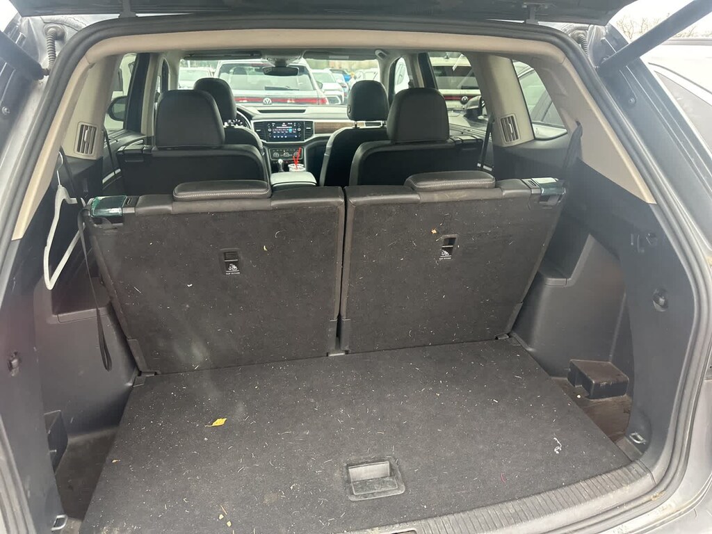 12 Speakers, 2nd-Row Dual Captains Chairs, 3.60 Axle Ratio, 3rd row seats: split-bench, 4-Wheel Disc Brakes, ABS brakes, Active Blind Spot Monitor, Air Conditioning, Alloy wheels, AM/FM radio: SiriusXM, Auto High-beam Headlights, Auto-dimming Rear-View mirror, Automatic temperature control, Brake assist, Bumpers: body-color, Compass, Delay-off headlights, Driver door bin, Driver vanity mirror, Dual front impact airbags, Dual front side impact airbags, Electronic Stability Control, Emergency communication system: VW Car-Net services (capabilities require enrollment or subscription), Forward collision: FCW w/Autonomous Emergency Braking mitigation, Four wheel independent suspension, Front anti-roll bar, Front Bucket Seats, Front Center Armrest, Front dual zone A/C, Front fog lights, Front reading lights, Garage door transmitter: HomeLink, Heated door mirrors, Heated front seats, Heated rear seats, Heated steering wheel, Htd/Actively Ventilated Comfort Front Bucket Seats, Illuminated entry, Low tire pressure warning, Memory seat, Navigation System, Occupant sensing airbag, Outside temperature display, Overhead airbag, Overhead console, Panic alarm, Passenger door bin, Passenger vanity mirror, Perforated Vienna Leather Seating Surfaces, Power door mirrors, Power driver seat, Power Liftgate, Power moonroof, Power passenger seat, Power steering, Power windows, Radio data system, Radio: Discover Media 8.0 Touchscreen w/Nav, Rain sensing wipers, Rear air conditioning, Rear anti-roll bar, Rear audio controls, Rear reading lights, Rear seat center armrest, Rear window defroster, Rear window wiper, Remote CD player, Remote keyless entry, Roof rack: rails only, Security system, Speed control, Speed-sensing steering, Split folding rear seat, Spoiler, Standard Suspension, Steering wheel mounted audio controls, Tachometer, Telescoping steering wheel, Tilt steering wheel, Traction control, Trip computer, Turn signal indicator mirrors, Variably intermittent wipers, Ventilated front seats, Wheels: 20 Silver Triple 5-Spoke Alloy.